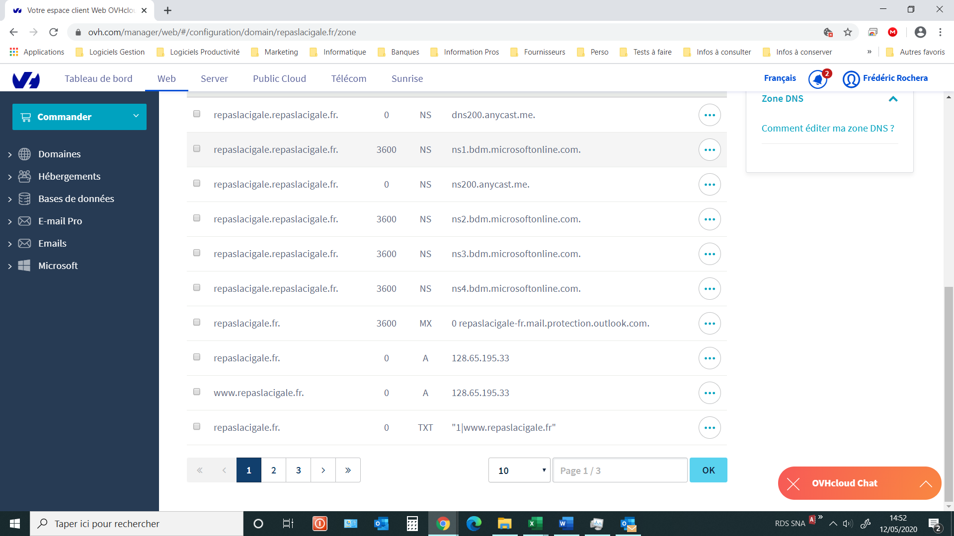 Je ne comprends pas ces DNS. Si Microsoft souhaite que je change de Zone DNS ou pas? Je souhaite rester chez OVH.