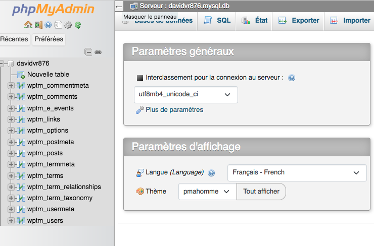 Ensuite dans OVH, j'ai exporté ma base SQL de O2switch et importé via PhpMyadmin.
