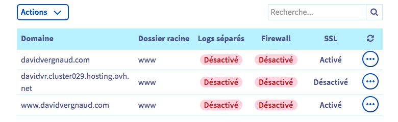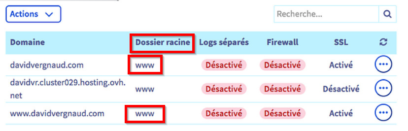 3.Chez OVH, il y a trois domaines dans la rubrique "Multisite" et je ne comprends leur différence et donc leurs attributions de chemin www ou public_html ou autre.