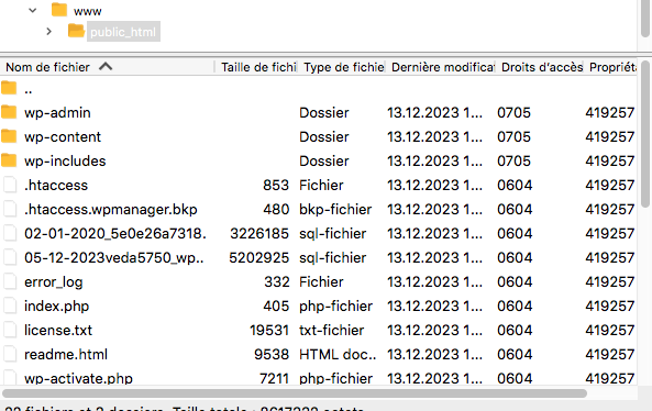* depuis celui en-dessous de public_html, c'est celui qui contient index.php et wp_config.php et d'autres choses