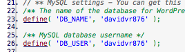 J'ai ouvert le fichier config et j'ai indiqué le nom de la base de données fourni par OVH.