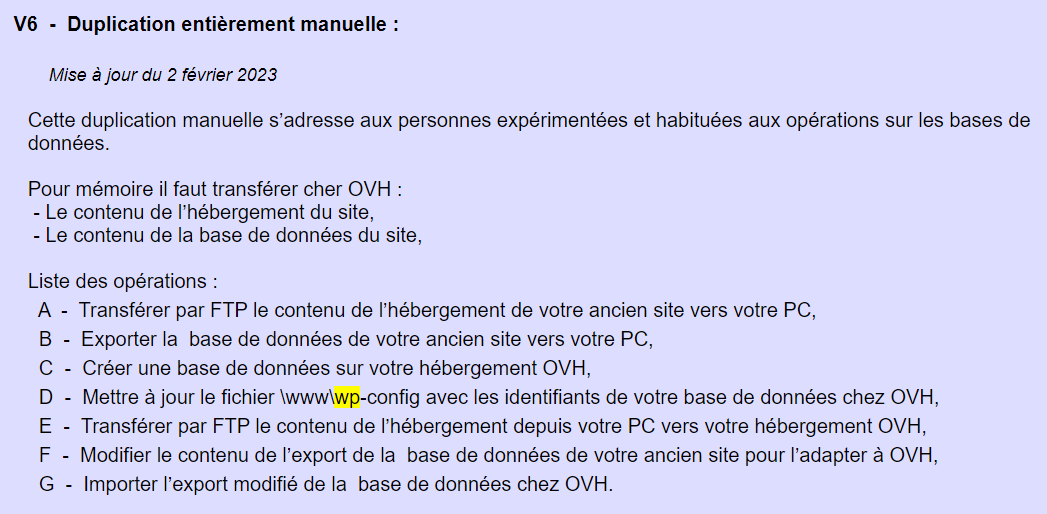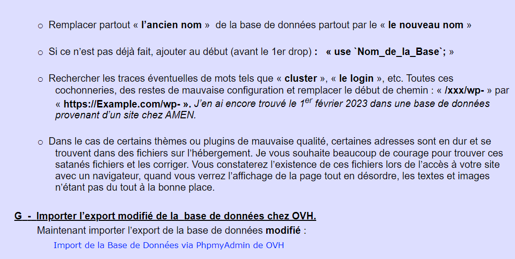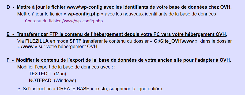 **V - Duplication, transfert de WordPress vers un autre hébergement**