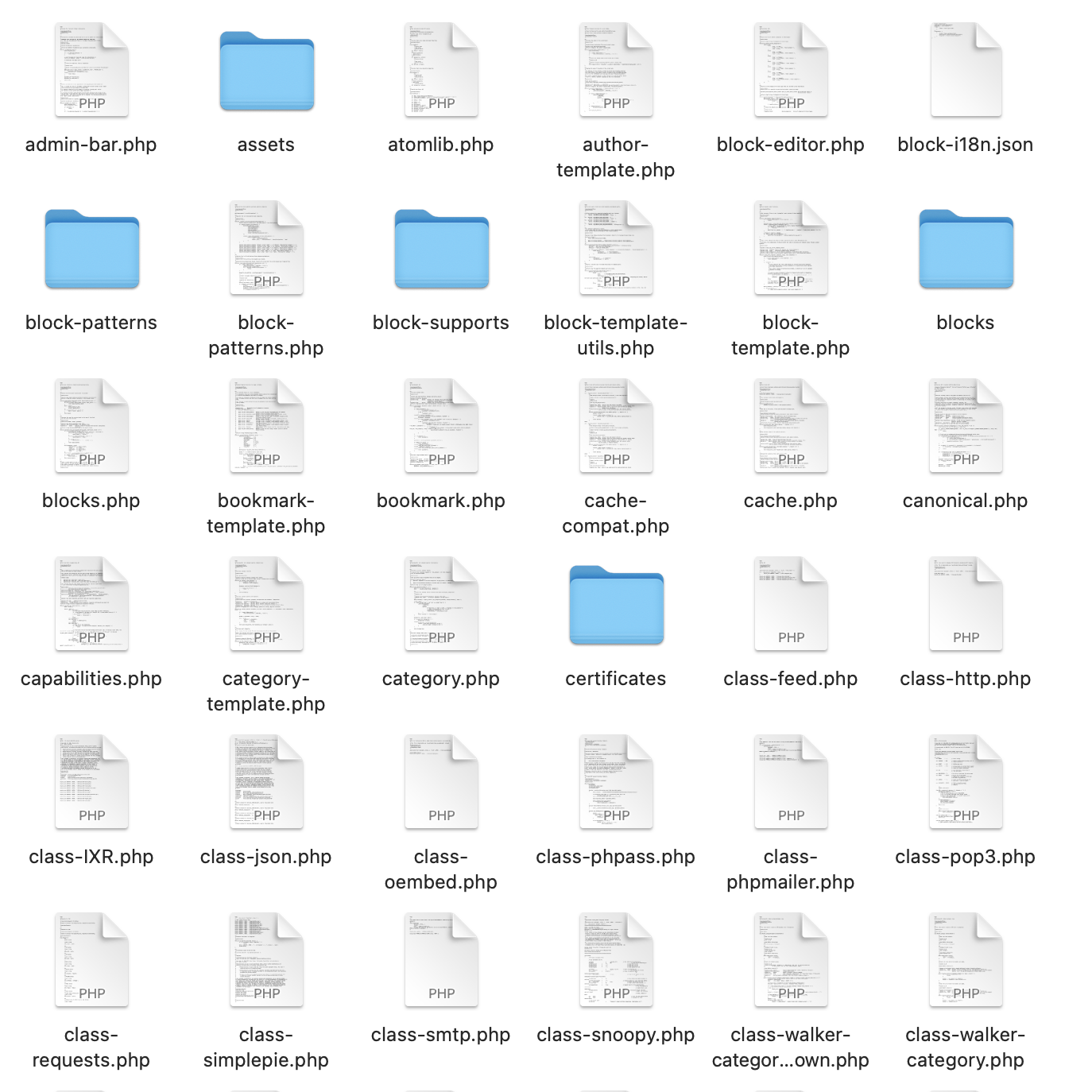 J'ai effectivement beaucoup de fichiers dans le wp-includes