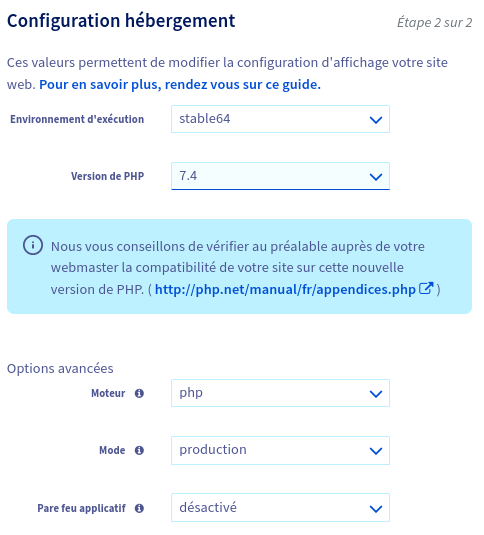 Hébergements Web - Mise à jour PHP au delà de 7.0