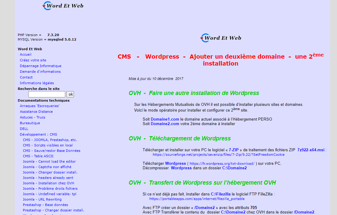 Voir **https://wordetweb.com/word-et-web/WORDPRESS-ajouter-deuxieme-domaine-2eme-installation-de-Wordpress-FR.htm CMS - Wordpress - Ajouter un deuxième domaine - une 2ème installation**