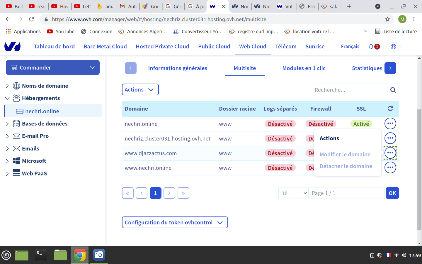 retour chez Ovh, Hébergement/Multisite: