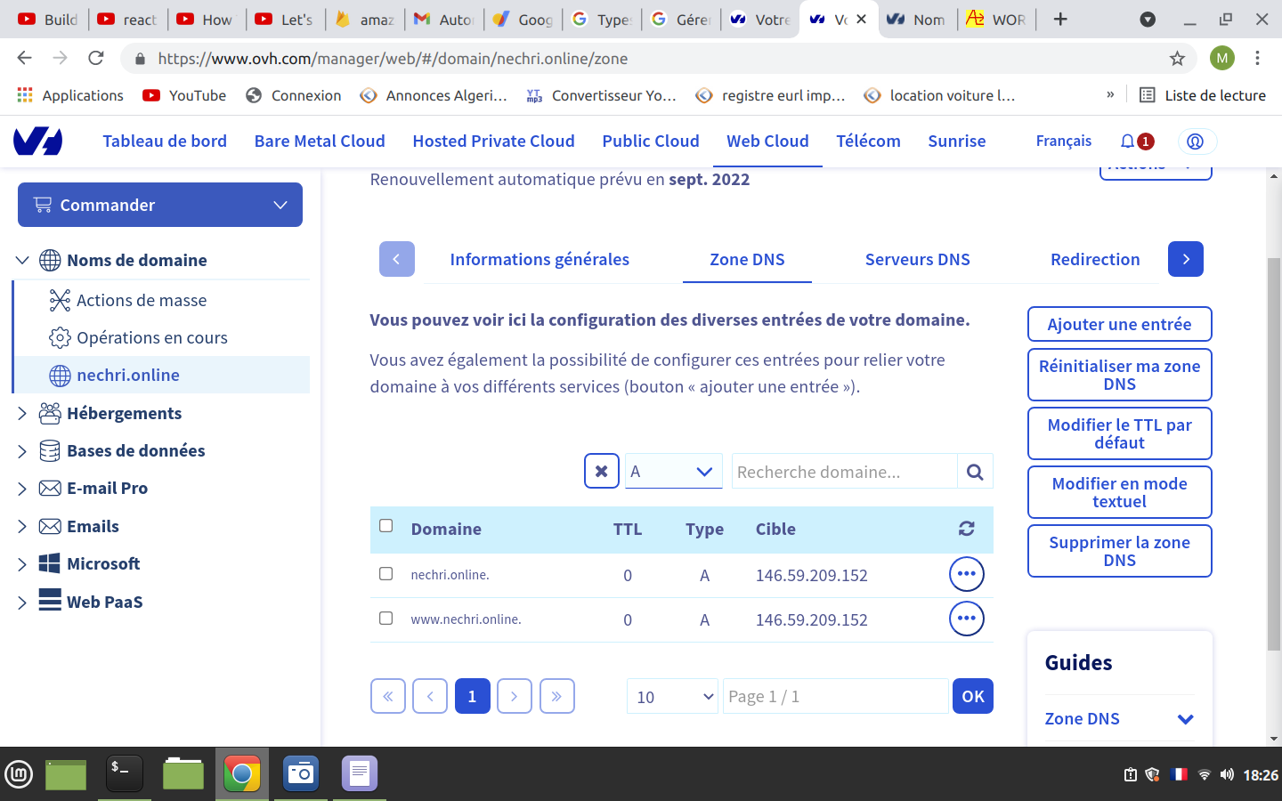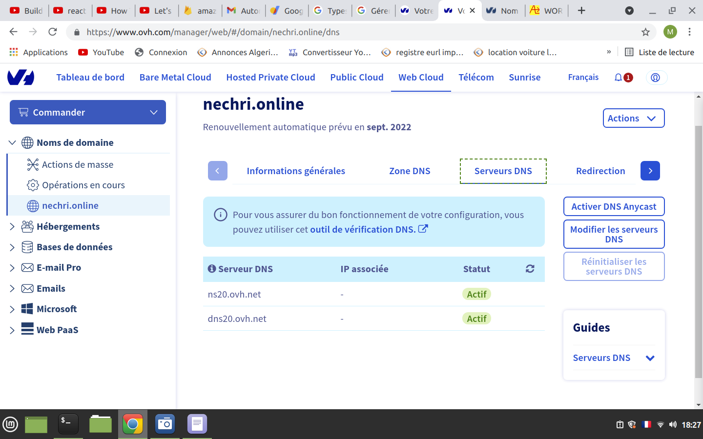 - Faire pointer nom de domaine externe vers hébergement OVH