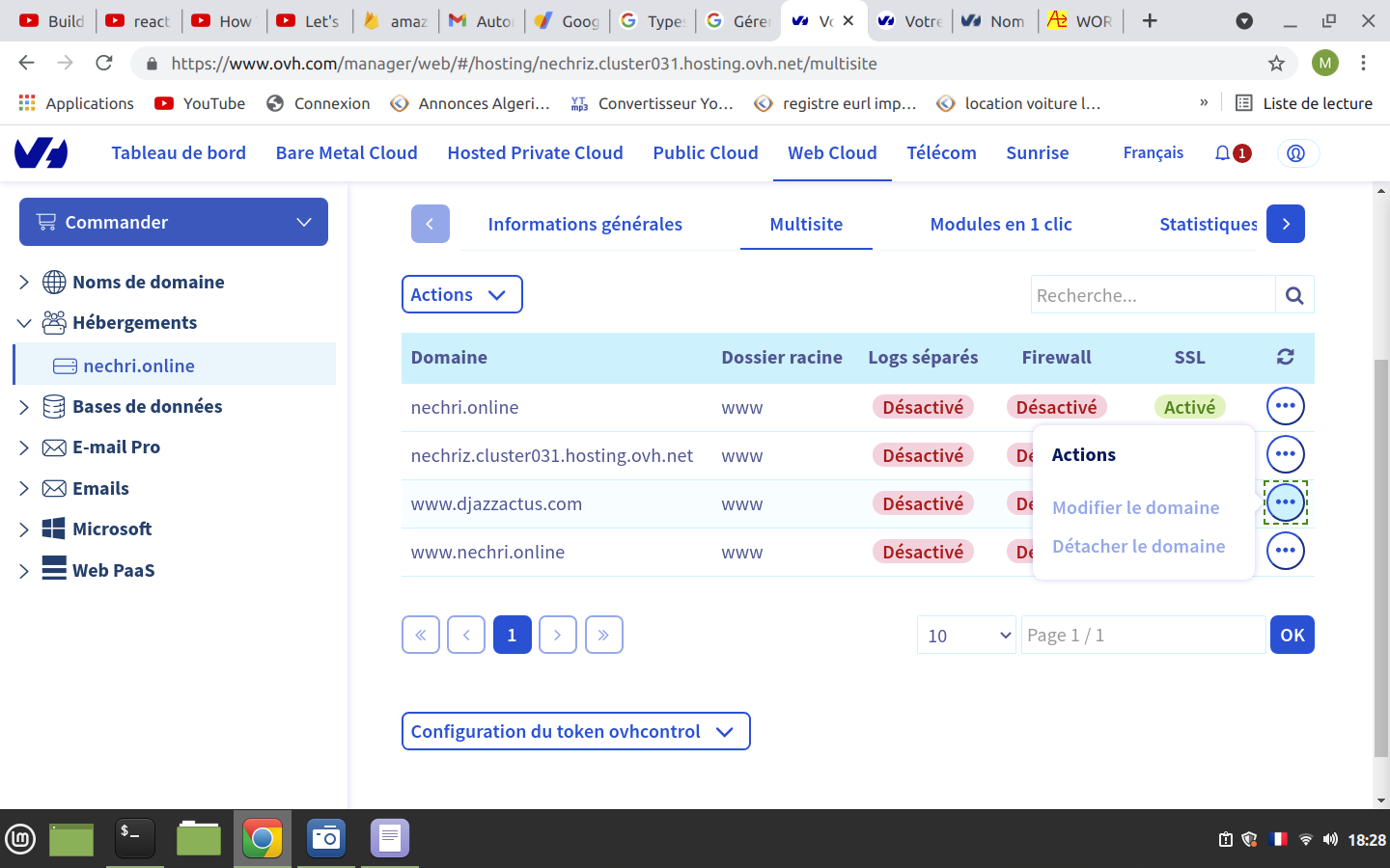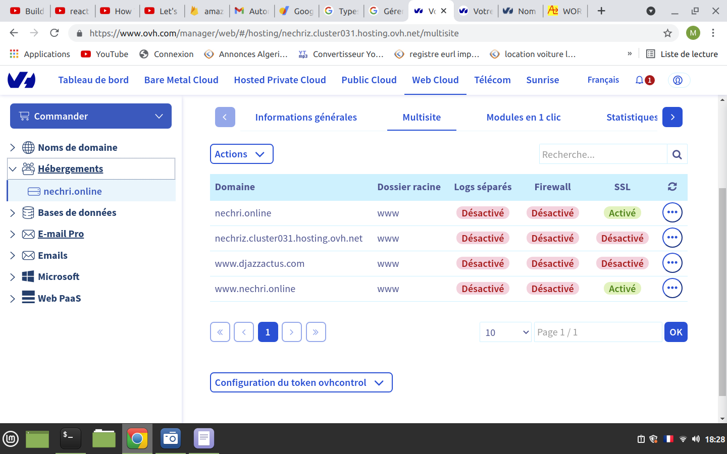 * manager Ovh/hébergement/multisite: en bas de page, noter **`token`**