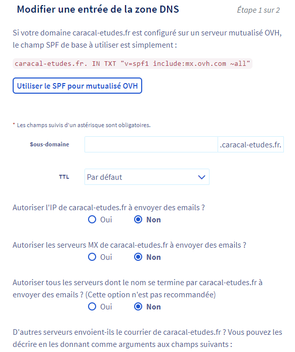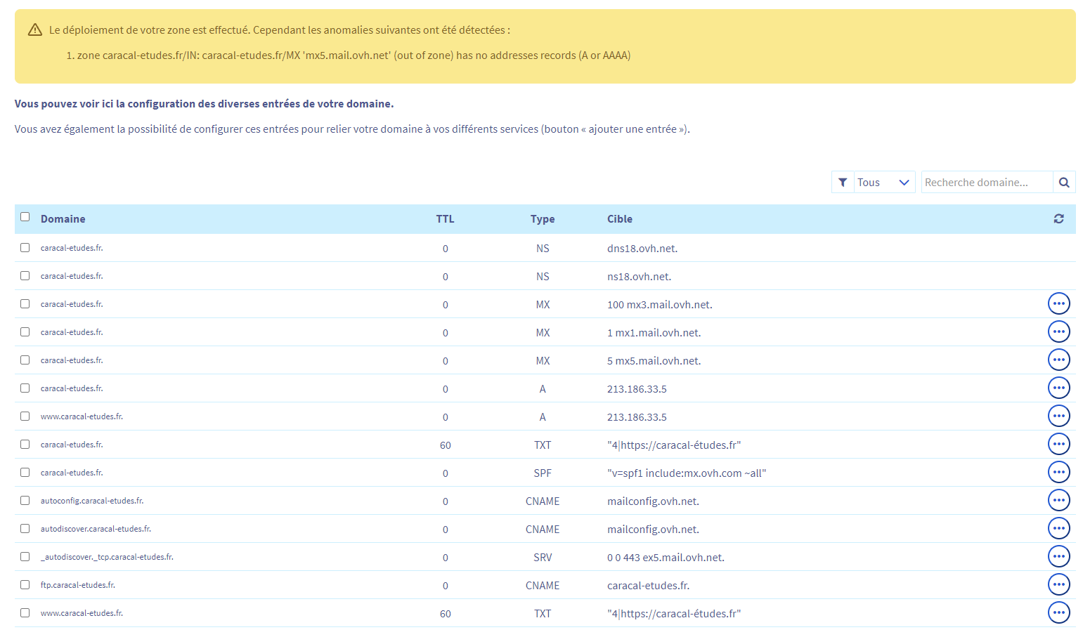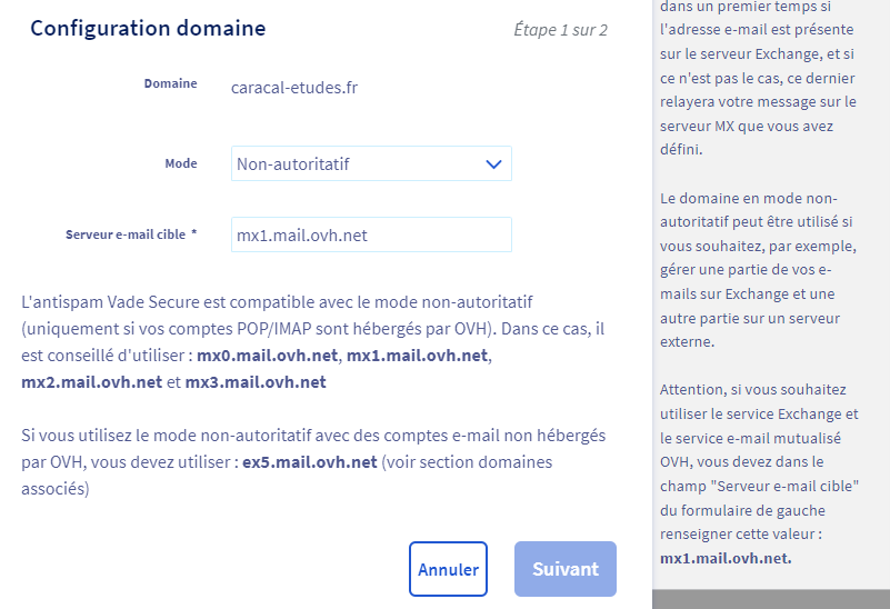 Faut-il modifier quelque chose ou revenir en arrière pour remettre le nom de domaine en ex2.mail.ovh.net. ?