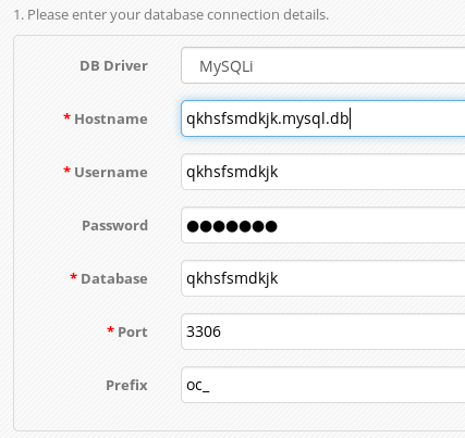 (ou autres paramètres si ce n'est pas la base de données mutualisée)