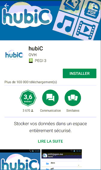 J'ai découvert par hasard Hubic, tarif attractif puis OVH mettre d'oeuvre je ne reflechis pas et je teste et je prends le service payant... ! Bon on va passer sur les perf desastreuse du service, car a ce prix il faut pas se plaindre ! Juste que vous vous etes rendu compte que votre client android n'etait plus sur le play store ??? erreur 404.