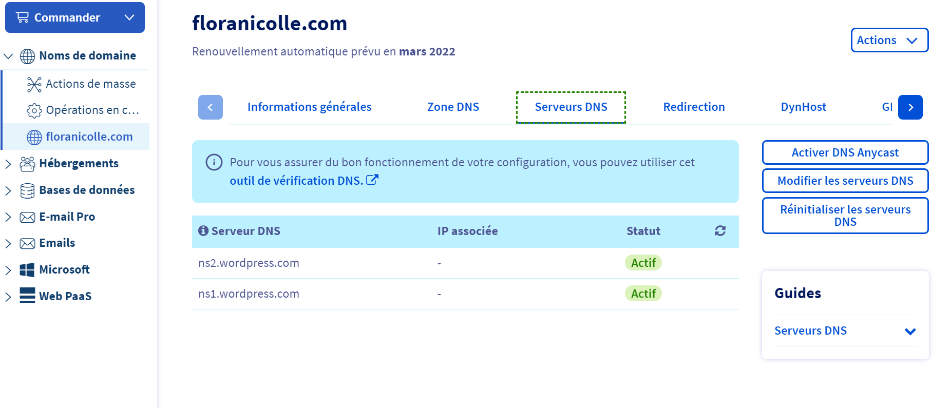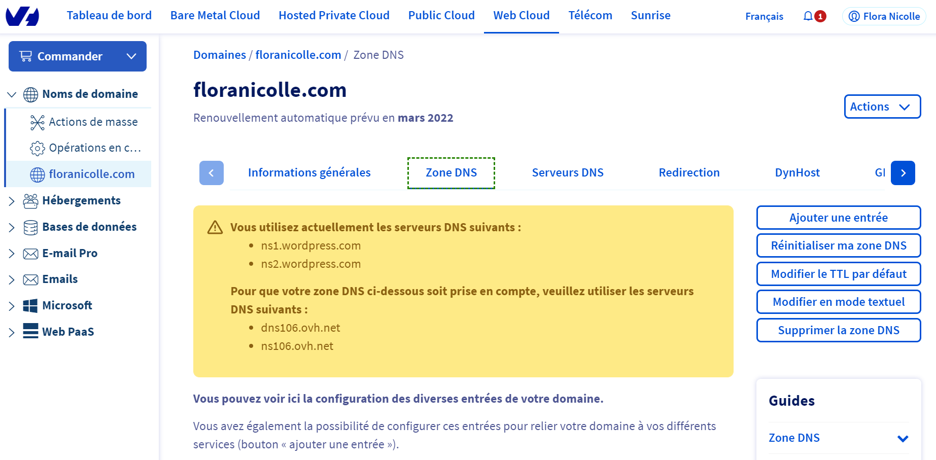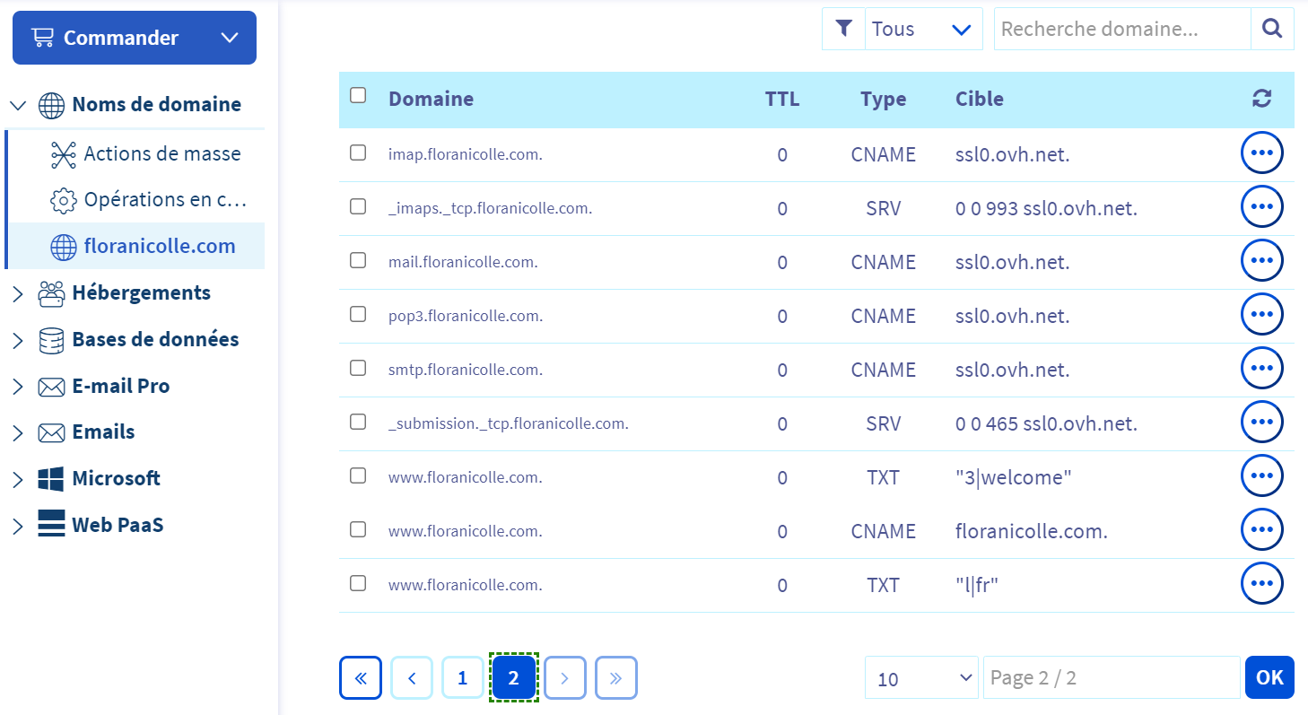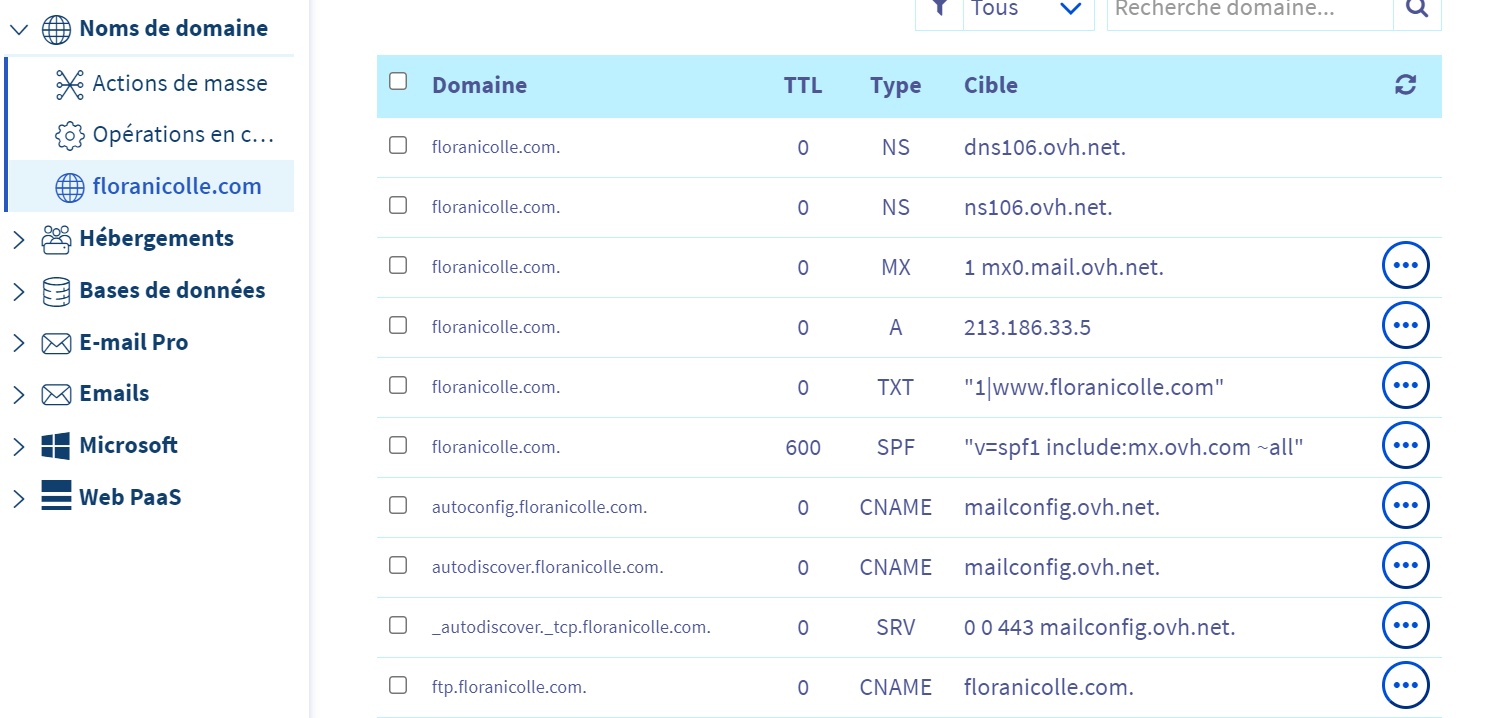 Notez que vous avez une zone DNS chez OVH, inutilisée,