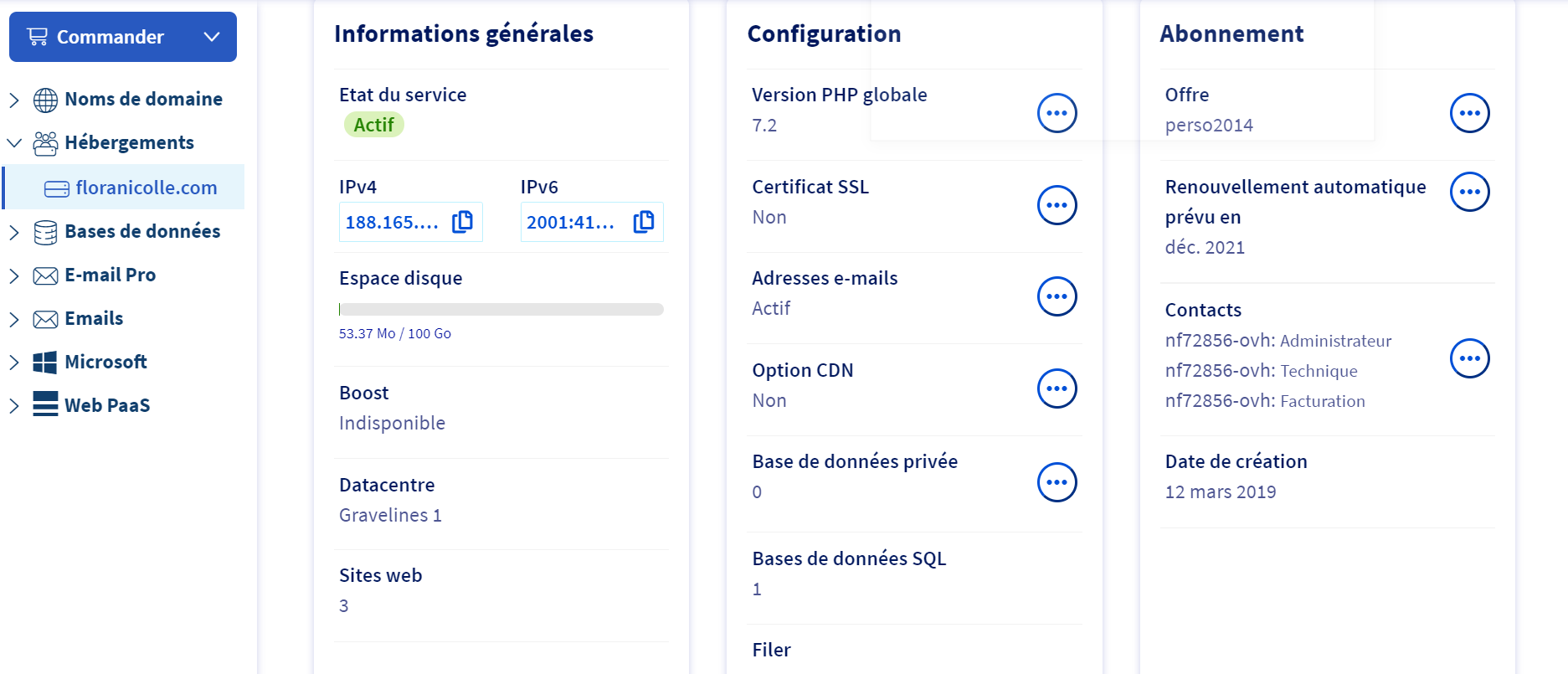 un hébergement web chez OVH, inutilisé
