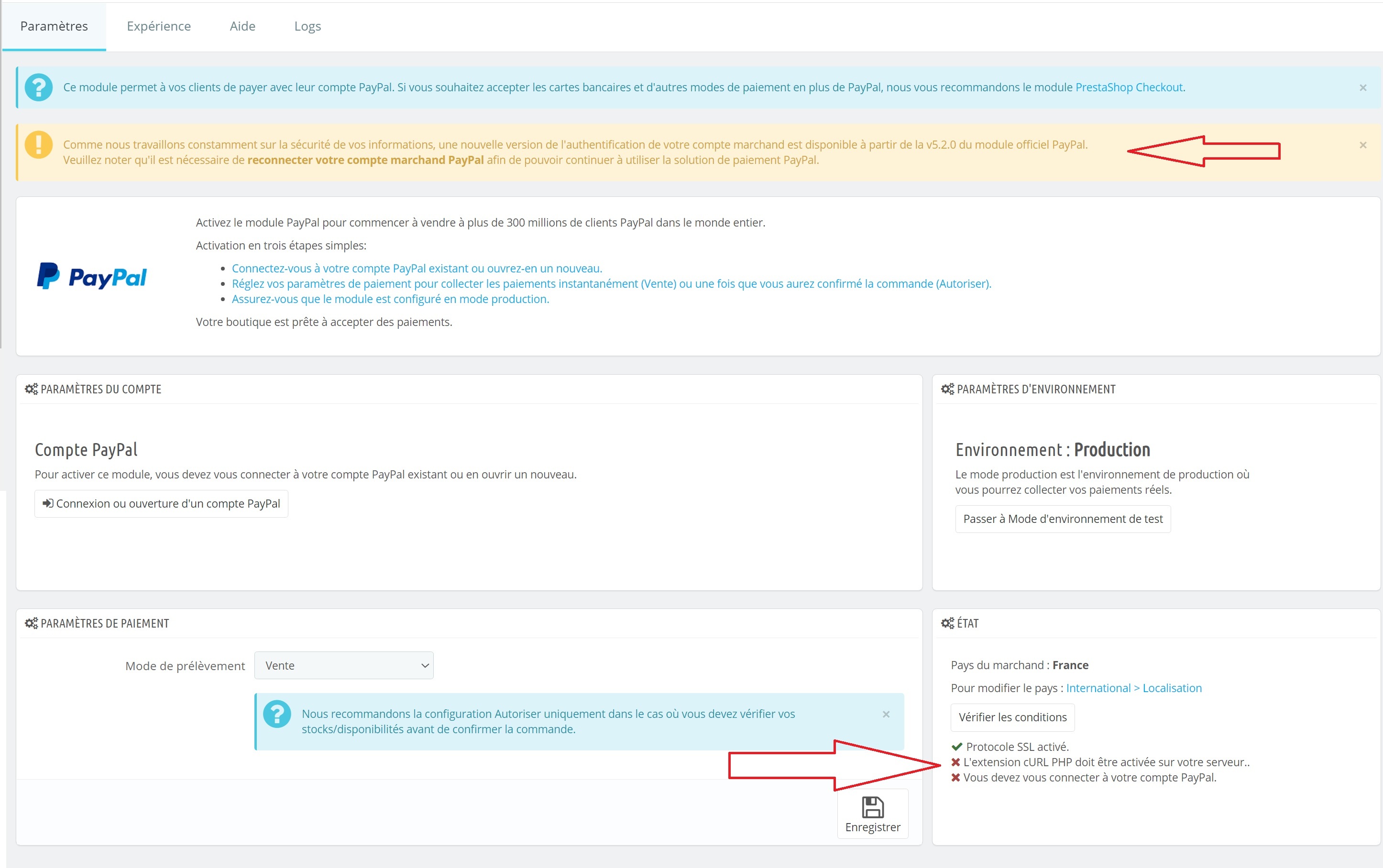 PayPal n'est plus dispo sur mon prestashop 1.7.6