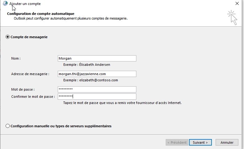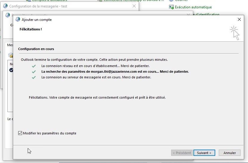 Je vous joins les différentes captures d'écran de l'installation d'une des boîtes mails.