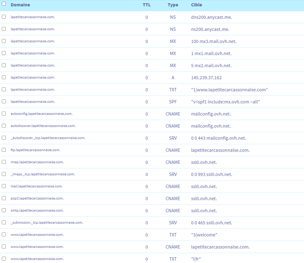 Les seuls serveurs DNS qui répondent pour votre domaine sont dns200.anycast.me et ns200.anycast.me.