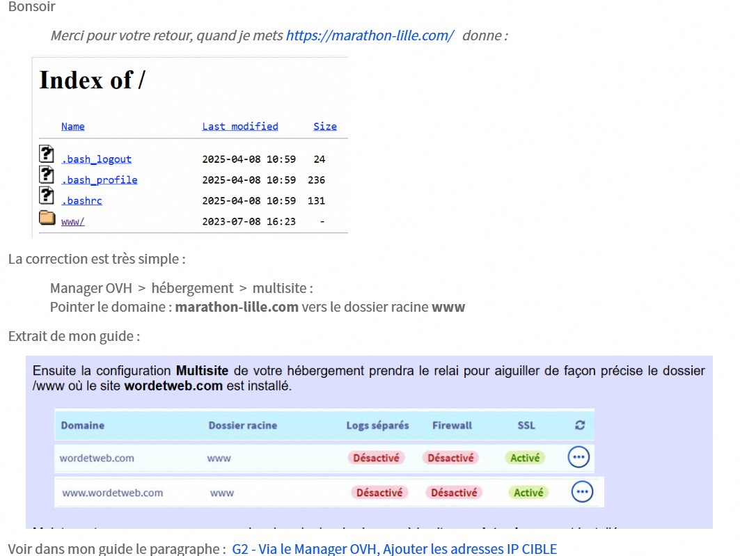 j'ai le résultat que je vous envoie en pièces jointes. Idem sur mon espace ovh