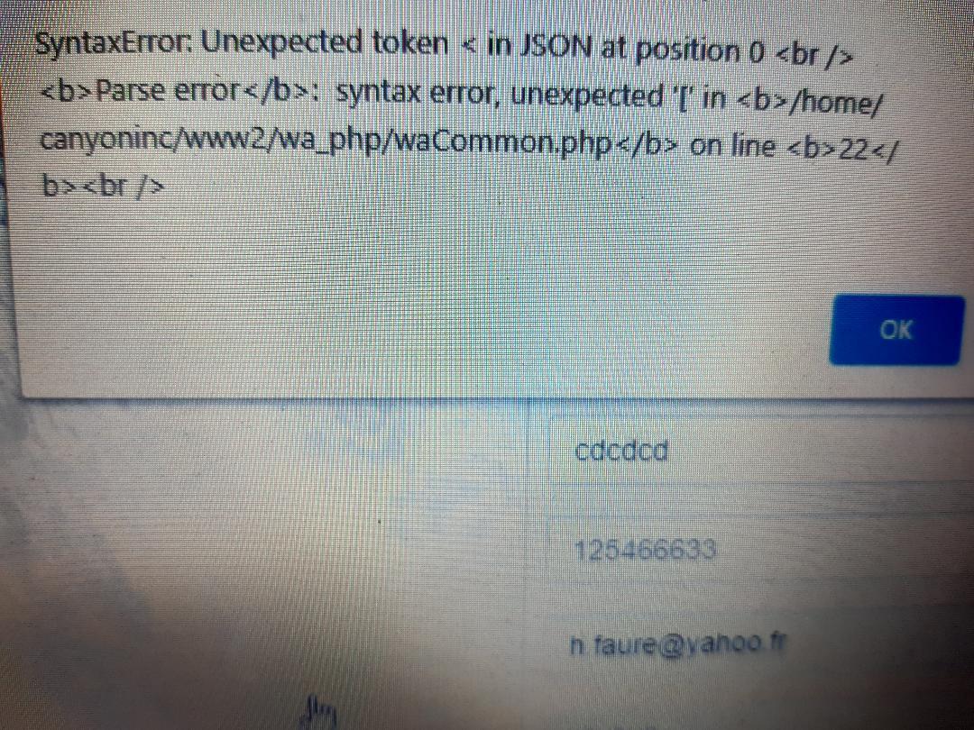 **DONC** ton script waCommon.php a une erreur vers la ligne22