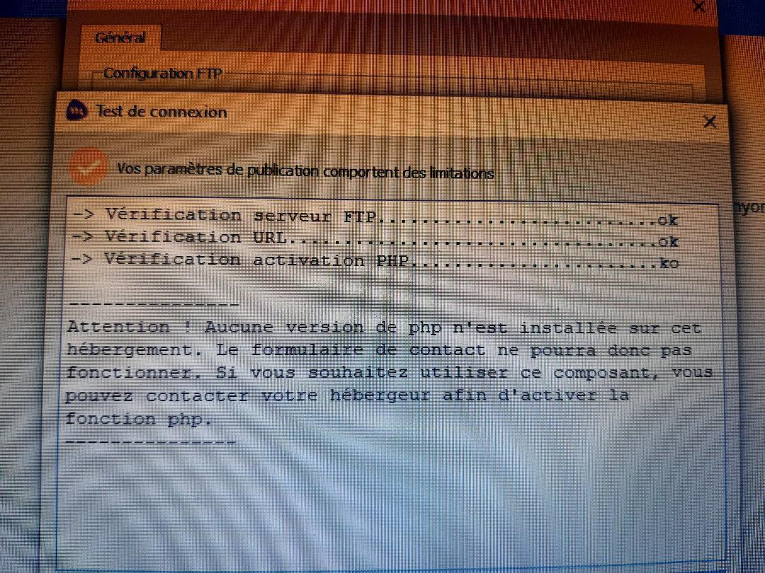 Je sollicite votre aide car je viens de m'apercevoir que le formulaire de contact de mon site internet utilisé pour mon travail ne fonctionne plus... après vérification et test depuis mon site internet (avec le logiciel WebAcappella grid), celui-ci me signale que mon hébergeur (ovh) n'a pas de php.
