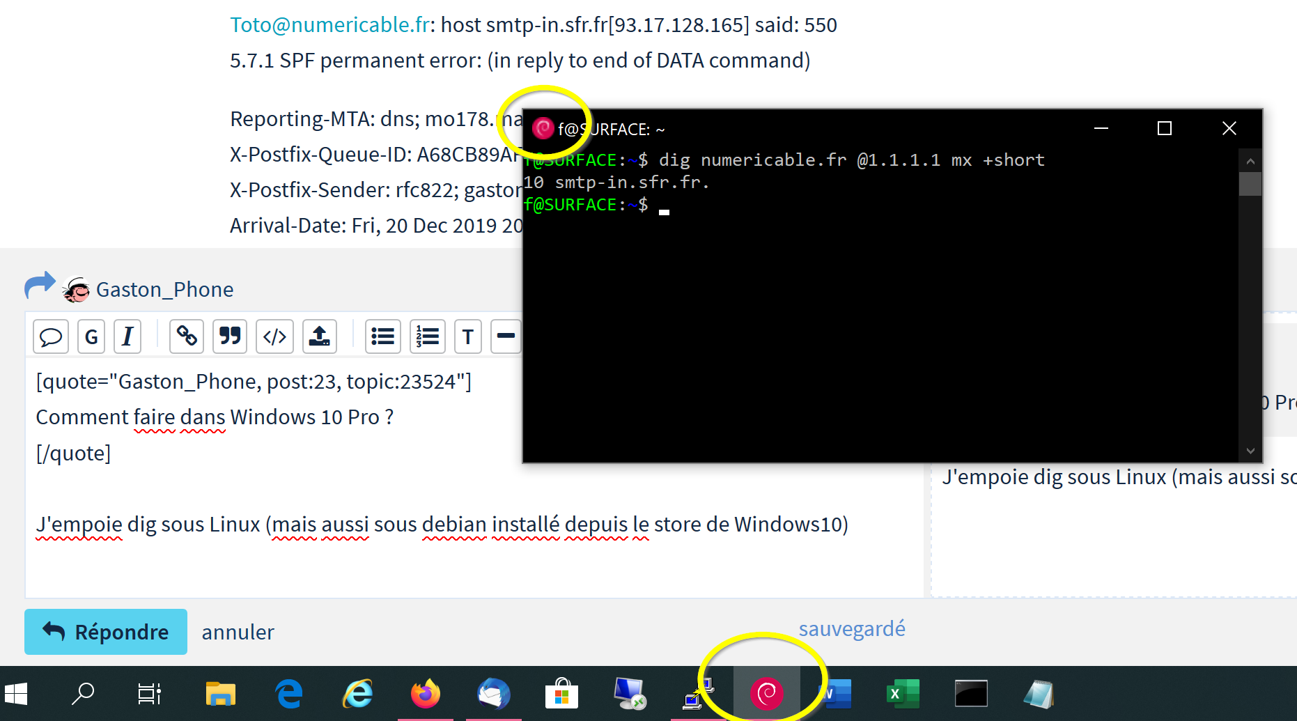 J'empoie dig sous Linux (mais aussi sous debian installé depuis le store de Windows10)