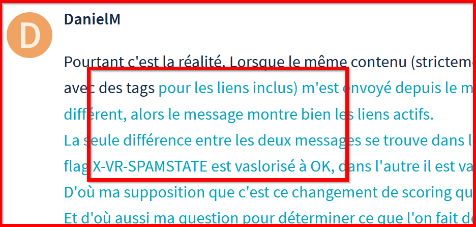 Je reçois un mail dont les liens ont été désactivés et rendus non-cliquables, visiblement à cause de ce flag X-VR-SPAMSTATE: ACCOUNT (seule différence avec le mail suivant).