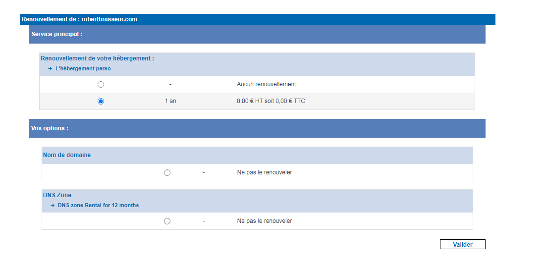 Quand je fais renouveler mes services, il me propose ceci. Mais ce n'est que l'hébergement, pas le nom de domaine à mon avis?