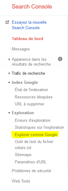 Sur la page **_Explorer comme Google_** entre les principales pages de ton site.