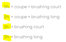 Pourquoi écrire en abrégé "Sh" sur les tarifs, alors qu'il y a toute la place pour écrire en entien le mot "Shampoing" ?