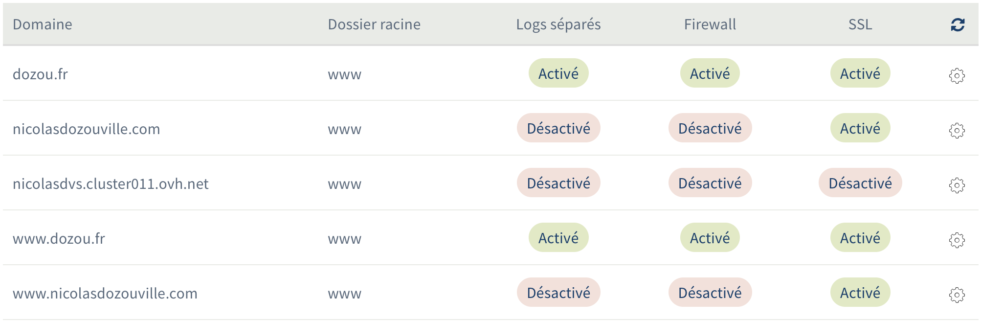 Quant au multisite, le service d'OVH me l'a fait faire hier, voici ce que j'ai :