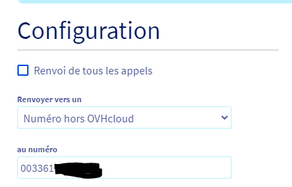 Vous pouvez, avec un abonnement découverte français à 0,99 € ht, activer un renvoi d'appel de tous les appels destinés à ce numéro vers un numéro externe à OVH.