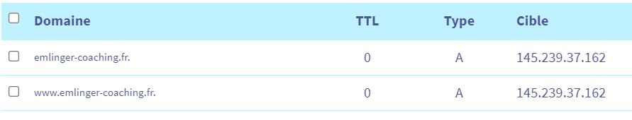 - dans la zone DNS de votre domaine : **deux** enregistrements A (domaine et www.domaine) vers l'IP 145... (hébergement zdg...) ; **aucune** entrée A vers l'IP 51... (hébergement ptt...) ; _éventuellement, deux_ entrées AAAA vers l'IPv6 de zdg... ; **aucune** entrée AAAA vers l'ipv6 de ptt...