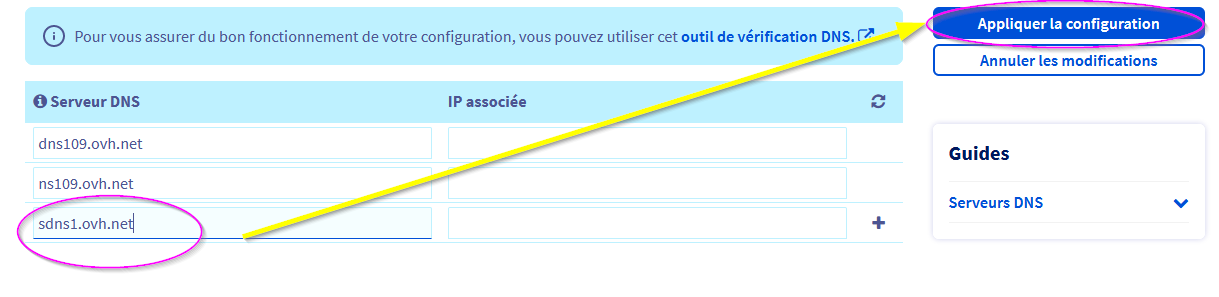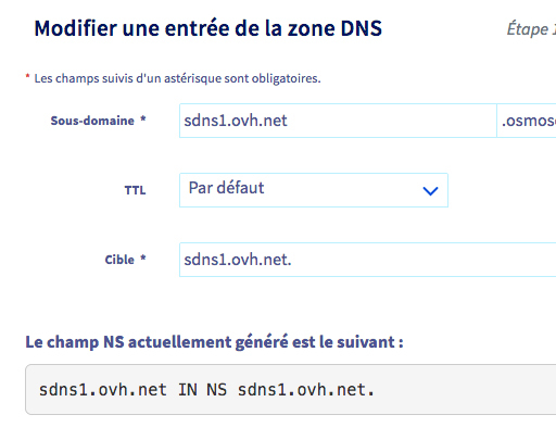 sachant que vous deviez d'abord désactiver DNSSEC et que vos deux serveurs DNS sont ns100.ovh.net