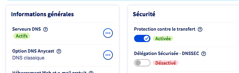 donc à présent, j'ai désactivé le dnssec, mes deux serveurs DNS sont ns100.ovh.net et dns100.ovh.net.