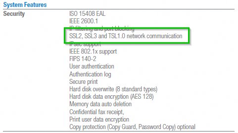 Voyez la fiche de spécifications https://kmbs.konicaminolta.us/products/predecessor-products/bizhub-c258/ -> https://kmbs.konicaminolta.us/wps/wcm/connect/newweb/aa52d602-1371-4dfa-8eb7-90dc4c5bec66/bizhub_C258_Spec_Sheet.pdf?MOD=AJPERES&attachment=false&id=1572009223663