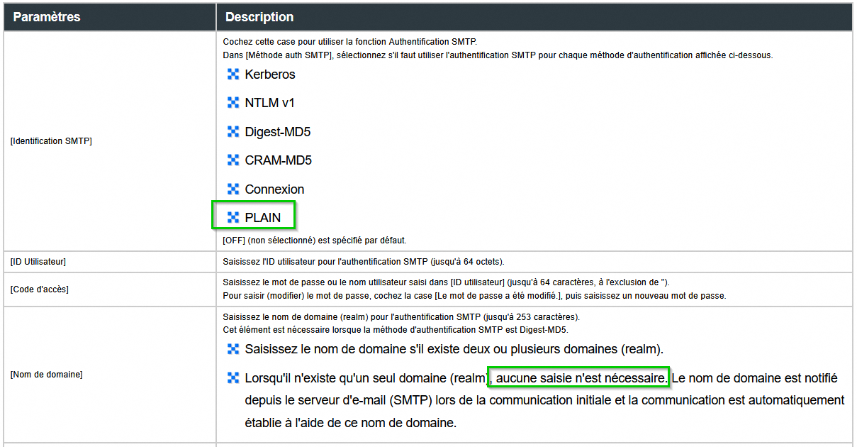 J'ai tenté de rentrer le serveur smtp : ssl0.ovh.net avec le port 587 pour l'envoi depuis une adresse email créée dans mon MX PLAN, mais malheureusement, je suis toujours en erreur d'authentification sur le serveur depuis le photocopieur.