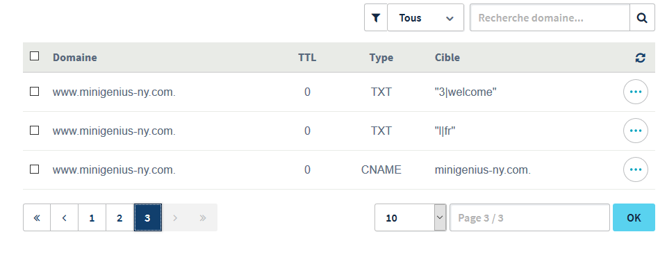 ```text > l'enregistrement AAAA, et même les 2 TXT : ''welcome et fr''.