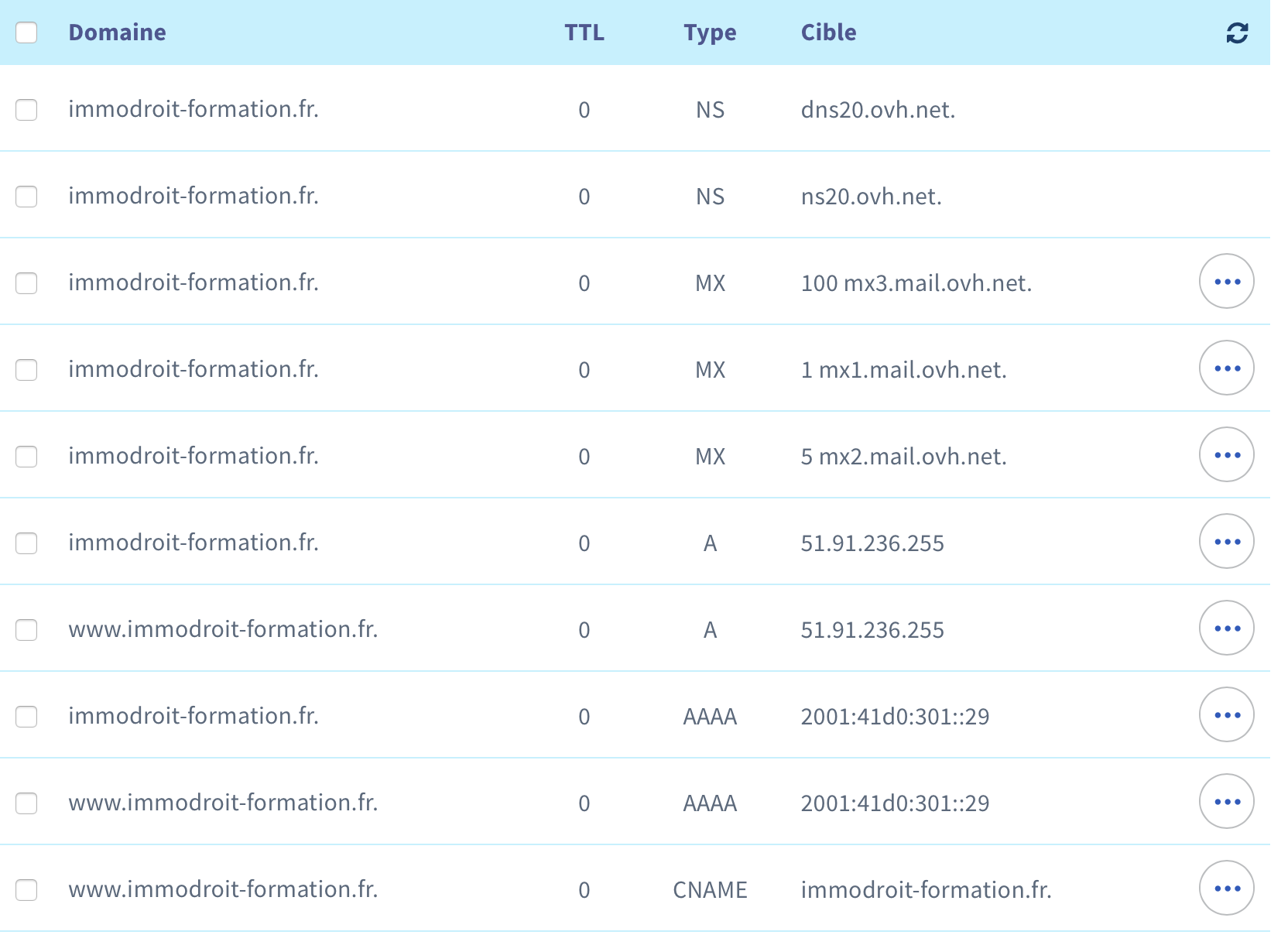 Ensuite dans la zone DNS je ne sais pas ce qui est sensé avoir pour être honnête je suis pas mal perdu.. j'ai eu des "Type" en plus ! Est ce que quelque chose bloque sur la zone DNS et ne me permet pas de voir mon site ? Merci d'avance pour votre aide !