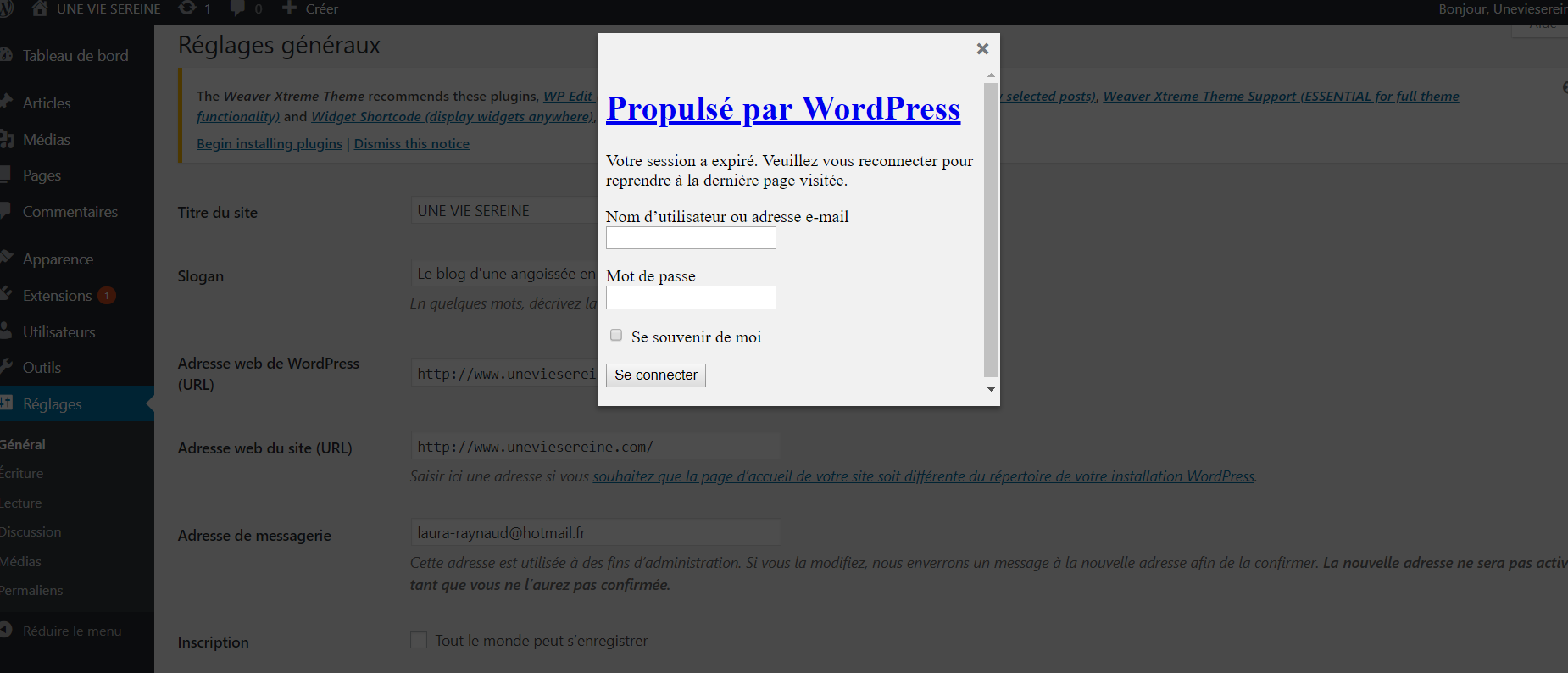 Impossible de rentrer sur la page d'administration de mon site, je reçois ce message :