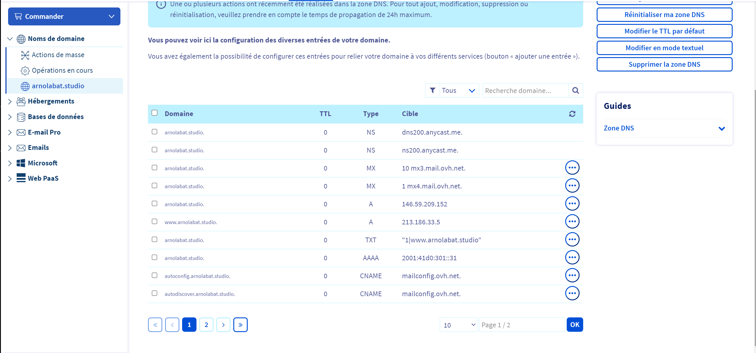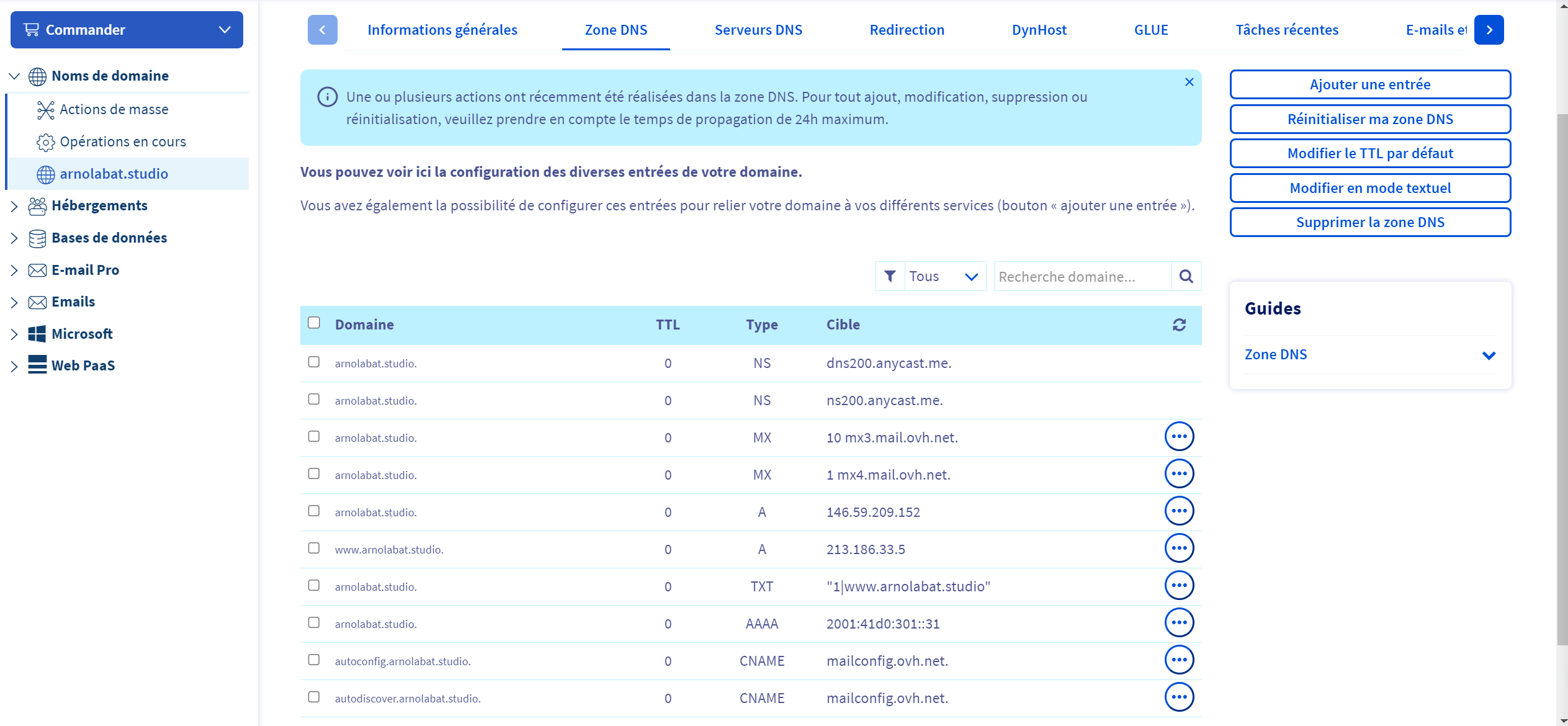 **Manager OVH > Web Cloud > Domaine > VotreDomaine > Zone DNS**