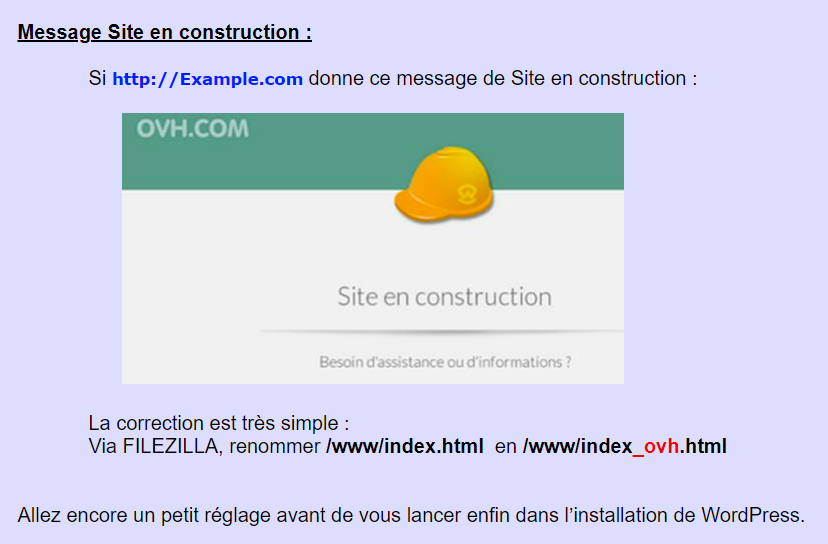 Voir --> **https://www.wordetweb.com/word-et-web/WORDPRESS-guide-installation-de-WordPress-premier-domaine-chez-OVH-FR.htm CMS - WordPress - Guide Installation chez OVH**