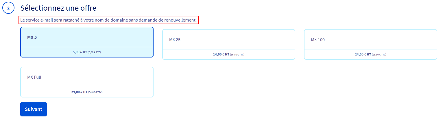 On dirait que l'offre MX est intégrer dans les services de type starter.