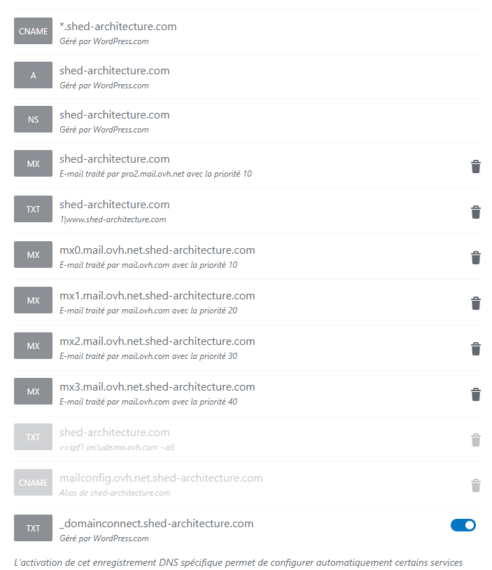 supprime les TXT et MX