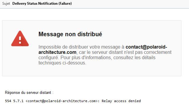 - Envoie de Mails rejetés quelque soit le destinataire