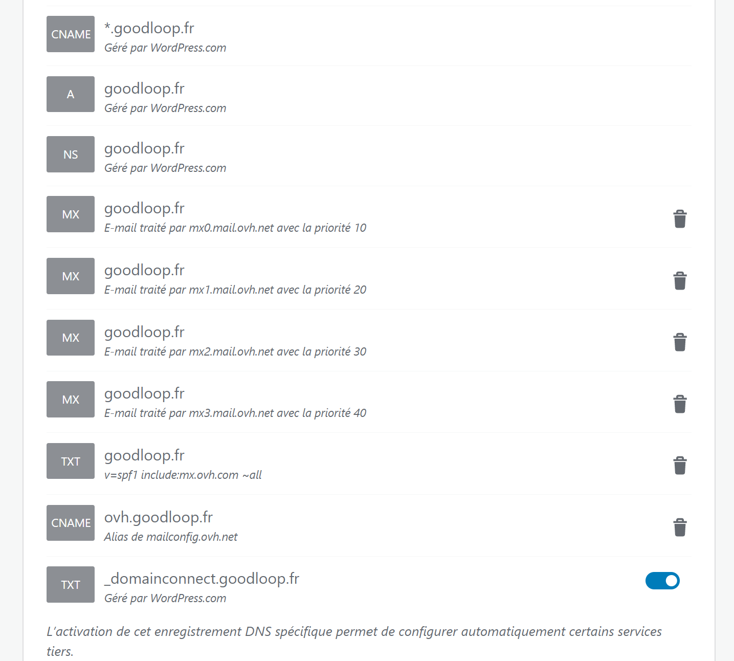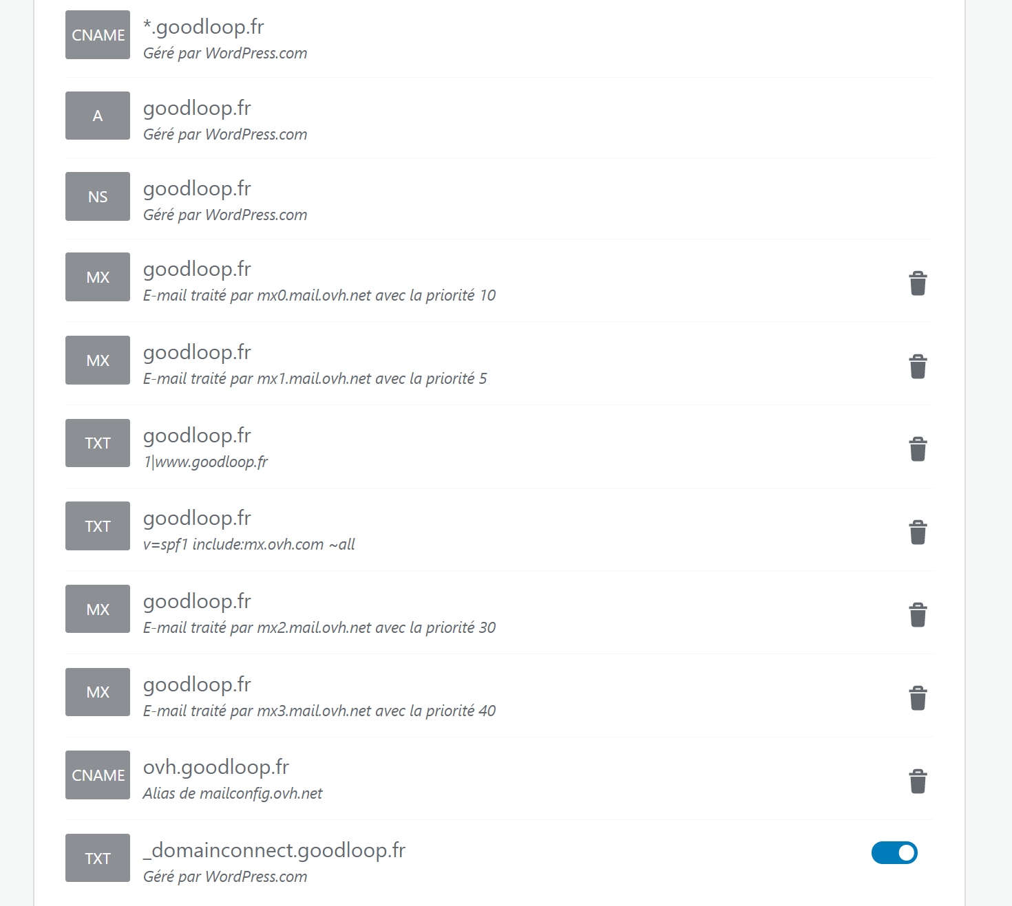 Mais depuis, je ne reçois plus de mails sur mon adresse contact@goodloop.fr car je pense qu'elle se retrouve sur les serveurs Wordpress au lieu de OVH.