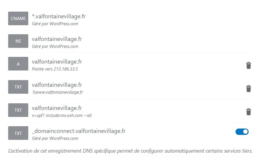 J'ai fait les transferts de serveurs DNS vers Wordpress pour mon nom de domaine afin de pouvoir faire pointer mon site Wordpress sur le bon domaine.