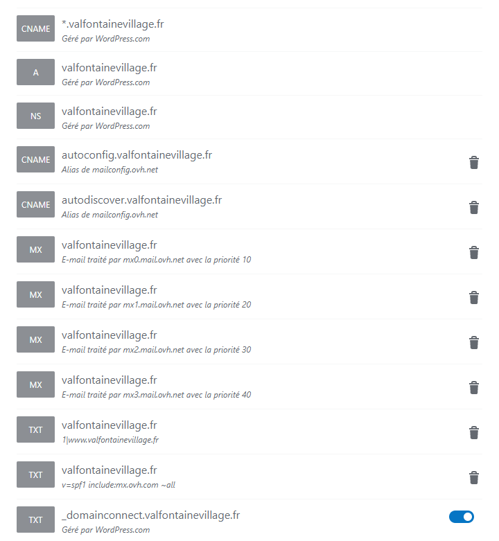 - dans mes paramètres DNS WP, il y avait déjà des éléments MX, TXT et CNAME configurés. Est-ce que les MX, TXT et CNAME que tu m'as mis ci-dessus doivent les remplacer ou venir en plus?