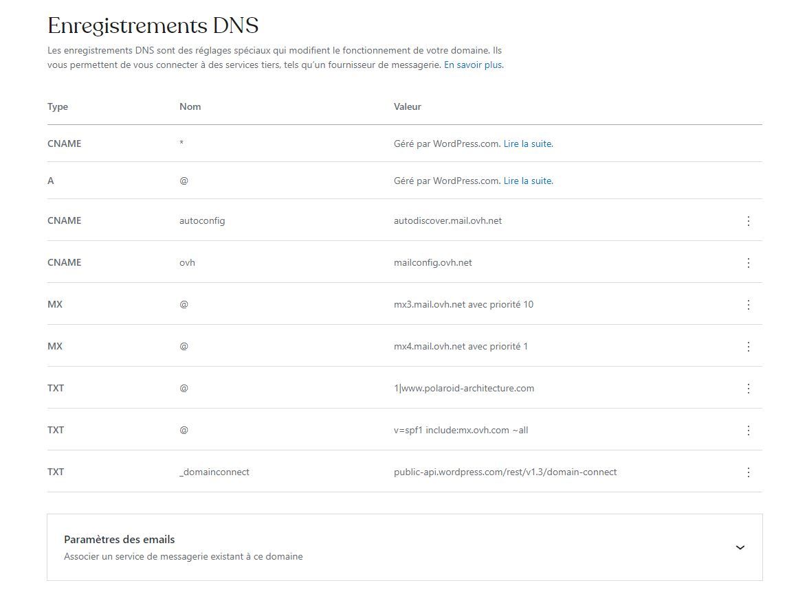 Transferts DNS OVH - Wordpress pour Webmail