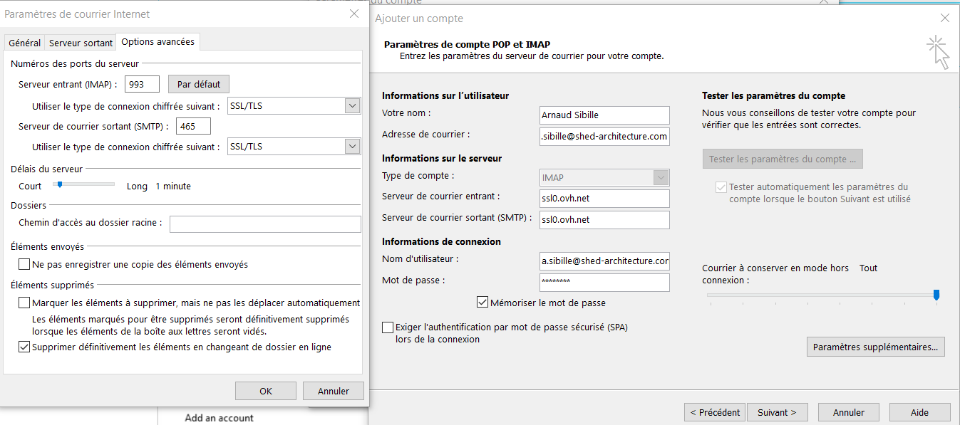 j'ai le même problème. je sais faire fonctionner le webmail d'ovh mais je n'arrive pas à configurer ensuite le compte dans Outlook, quelles sont les adresses à indiquer? merci !