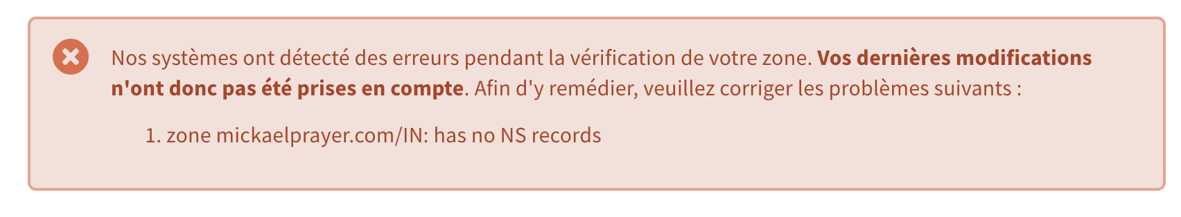- Une erreur est survenue lors de l'activation de la zone DNS