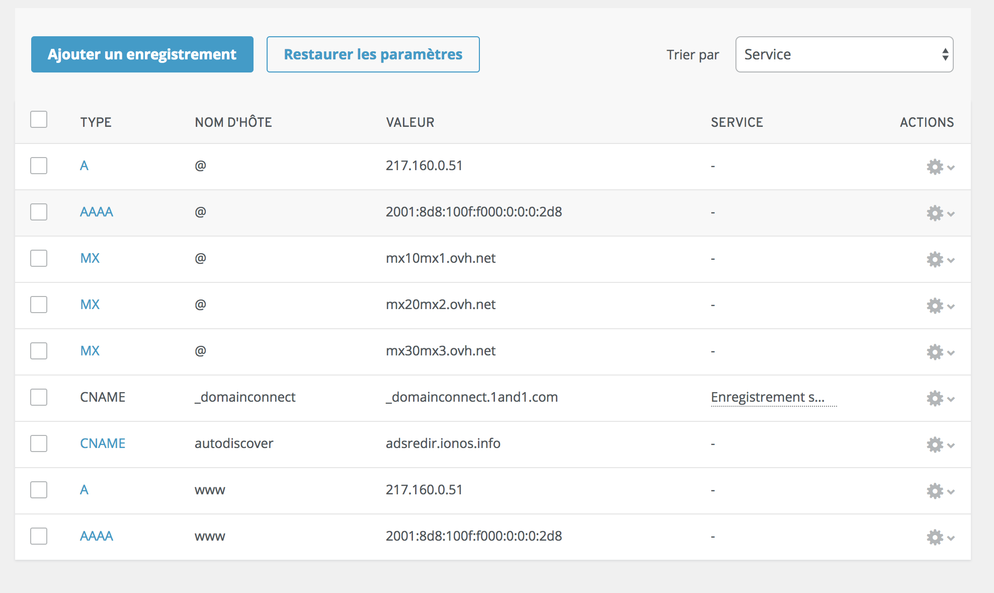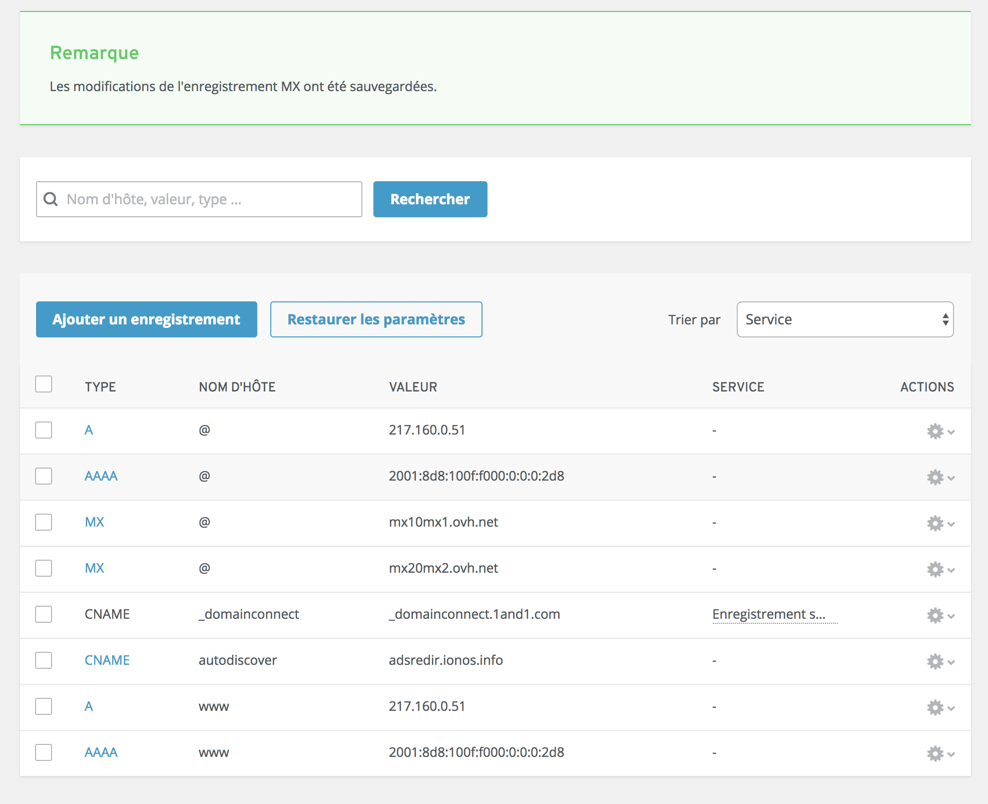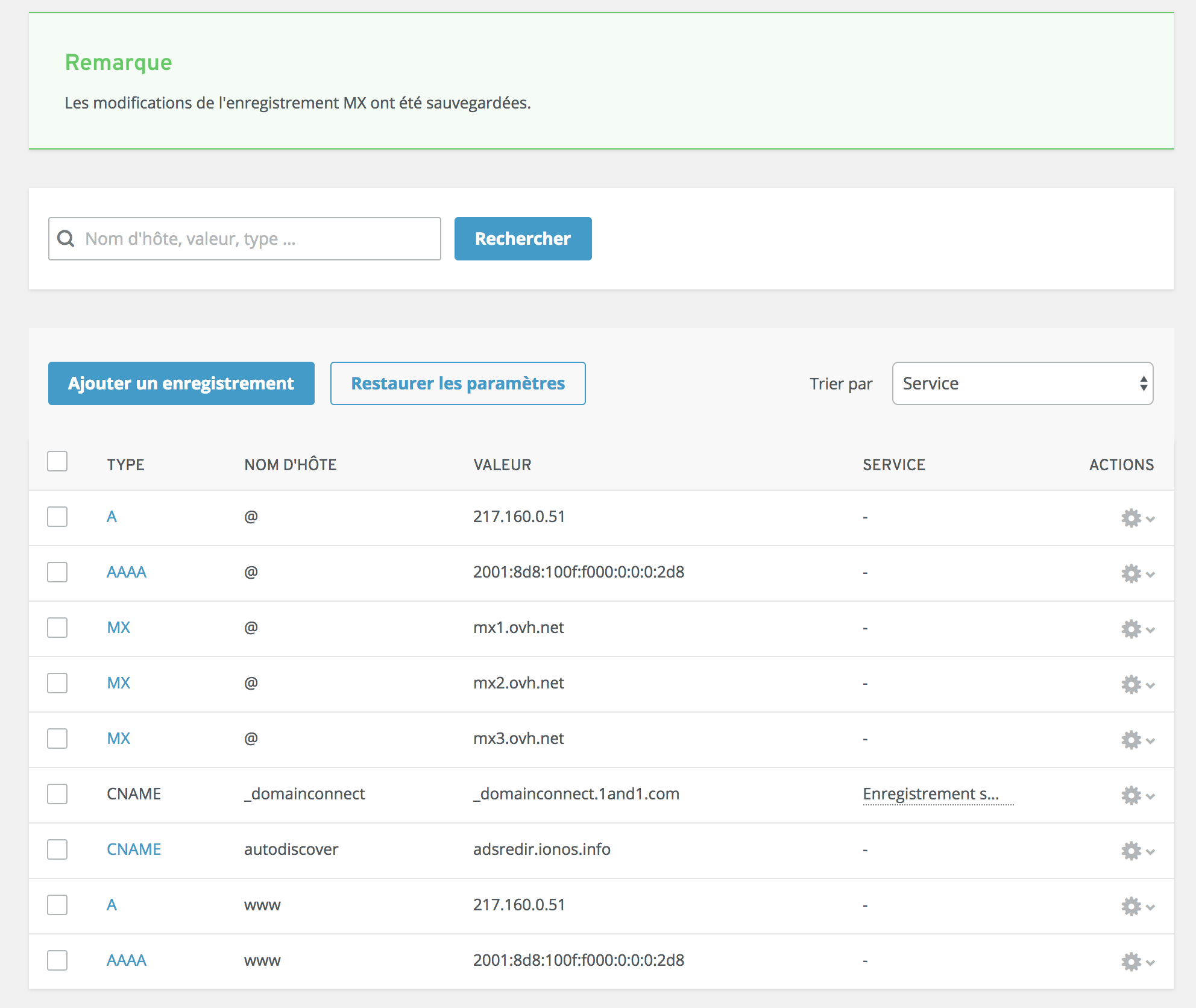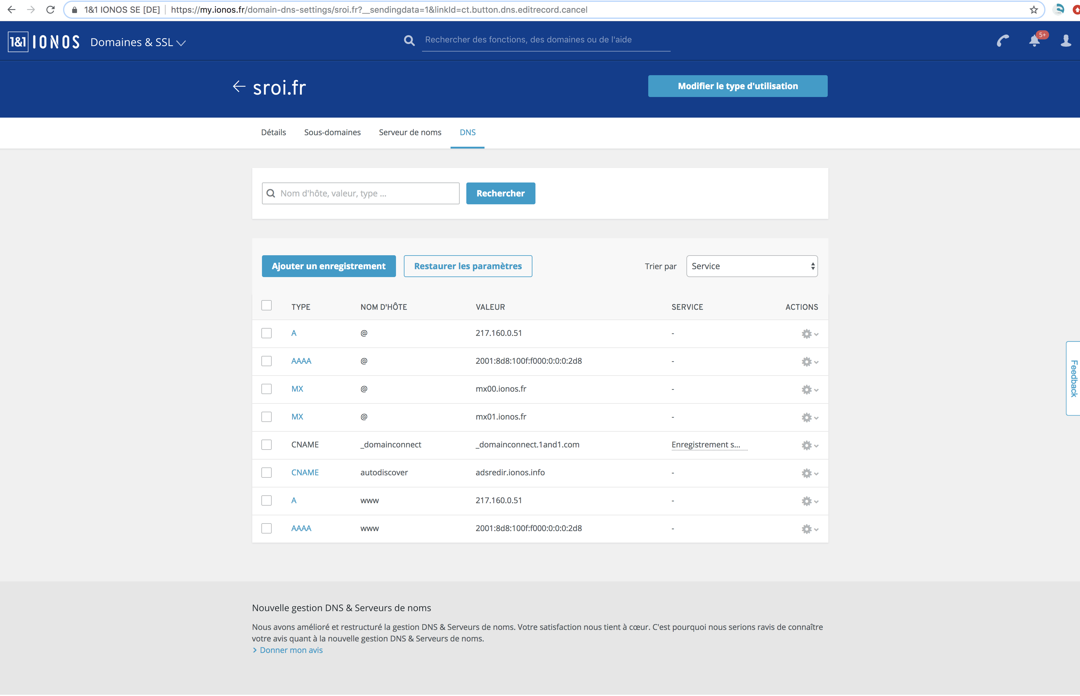 > Puis, forcément, il a fallu que je modifie les serveurs DNS chez OVH pour les remplacer par ceux de 1&1